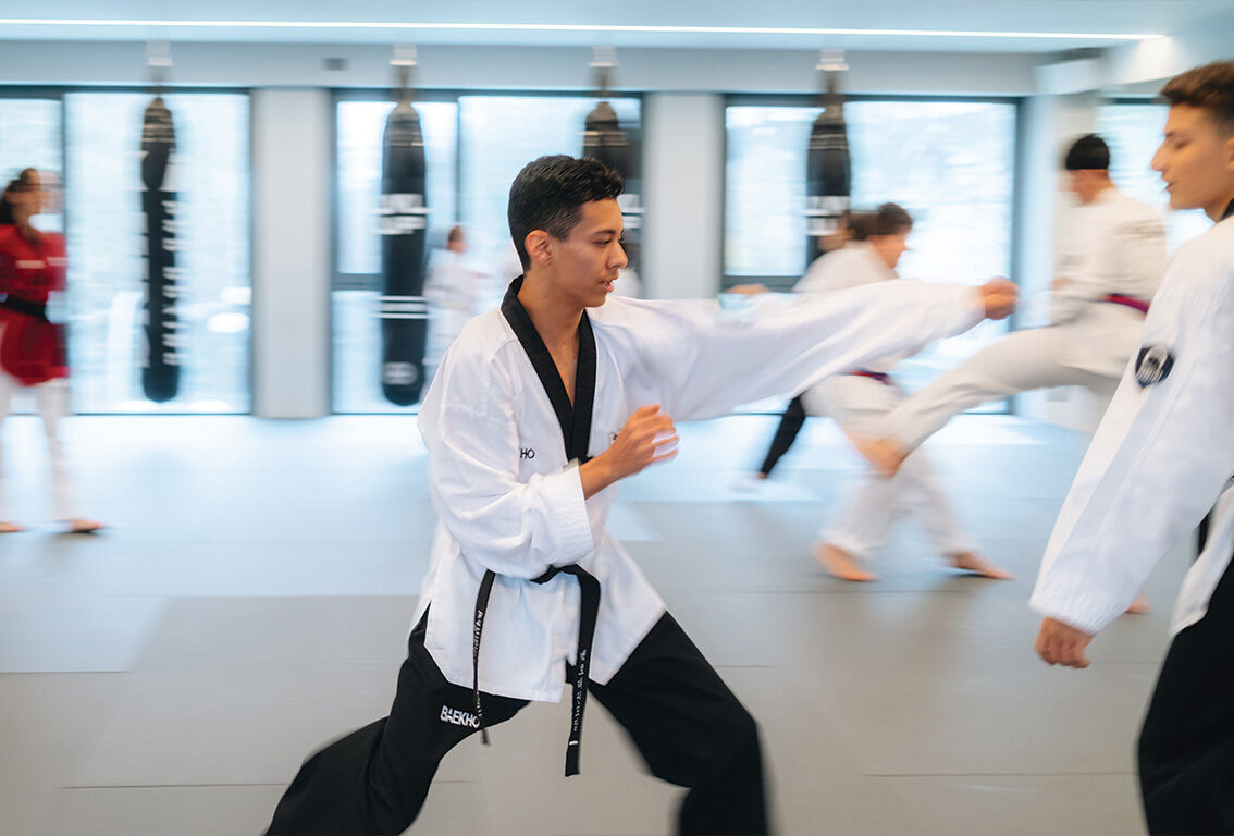 Gleichzeitig stärkt Taekwondo den Kopf: Konzentration, Disziplin und ein respektvoller Umgang gehören fest dazu. Jugendliche lernen, dranzubleiben, Grenzen zu setzen und mit Stress souveräner umzugehen. Unsere Trainer coachen klar, fair und persönlich. Das Ergebnis ist mehr Selbstvertrauen, im Training und im Alltag.