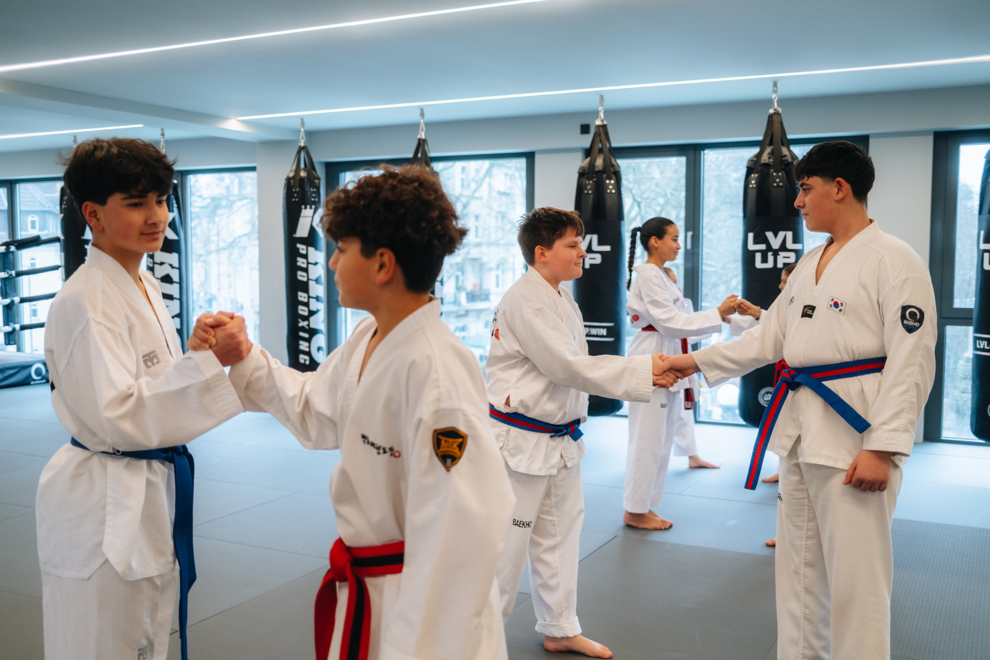 Das Training ist voller Energie und macht riesigen Spaß. Dein Kind lernt dynamische Kicks, Formenläufe und Partnerübungen. Mit jedem neuen Gürtel wächst der Stolz auf die eigene Leistung. Es erfährt, dass sich Anstrengung lohnt und Ziele erreichbar sind.