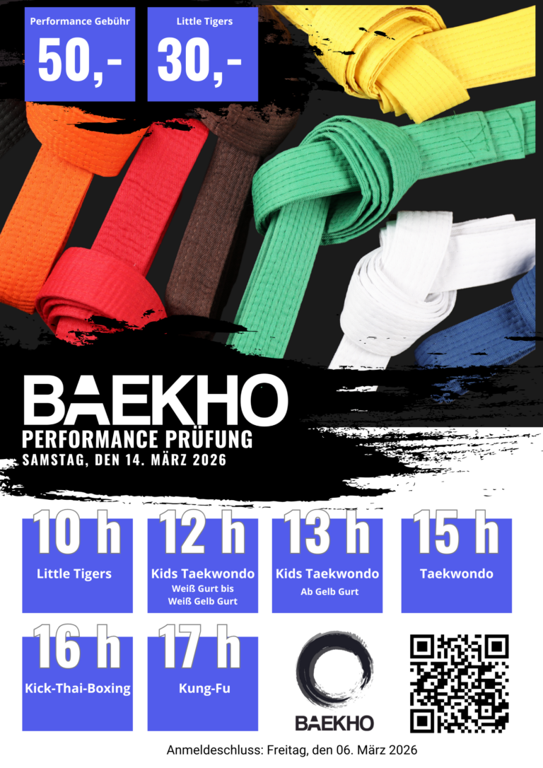 Gebühr: 50€ in Bar vor Ort / Little Tigers 30€