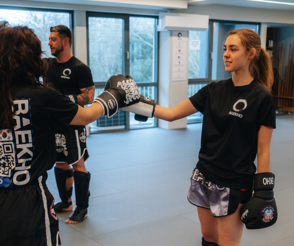 Das Kick-Thai-Boxen Training bei BAEKHO ist praxisnah und klar strukturiert. Grundlagen werden systematisch vermittelt, während Fortgeschrittene Technik, Timing und Körperkontrolle weiterentwickeln. Dabei wird sowohl an der physischen Leistungsfähigkeit als auch an der mentalen Stabilität gearbeitet.